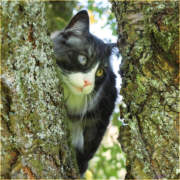 szczupła, długonoga, wyższa od przeciętnego kota | długie, lecz nienajgęstsze, lejące się i na ogół przylizane futro | czarny, dymny, ghost markingi [klasyczne] | biel na końcówce ogona, lewego ucha, na skarpetce lewej przedniej łapy oraz mordce | prawe oko niebieskie, lewe wybarwi się na złoto | załamana końcówka lewego ucha |