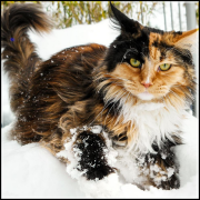 Zawsze pokazująca się z uśmiechniętym pyskiem, wysoko postawionymi uszami zakończonymi frędzelkami oraz błyszczącymi, złocisto-oliwkowymi oczami. |