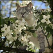 ŚLEPA NA PRAWE OKO (zachodzi mgłą). Cętkowany niebieski lynx point, krótkowłosa i wysoka kreatura o atletycznej budowie. Pysk standardowy. Końcówka ogona biała. |