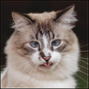 Ale oh, jaki Orka, Łotrzykiem zwany, jest piękny! O długim, białym futrze, które przyciemnione jest na pysku, łapach oraz ogonie, poprzecinane klasycznymi pręgami (czarny pręgowany colourpoint), z delikatnie jaśniejszym, szarawym nalotem na grzbiecie, ciągnącym się od końca karku aż do ogona. Mordka, ta piękna mordka... pyszczek ubarwiony ma bielą, która łączy się ze strzałką przebiegającą między jego oczami, z mniejszą czarną plamką po prawej stronie nad nosem. Istny syn mamusi, widać! O, a żeby nie zapomnieć, paluszki przednich i tylnych łap są także białe.