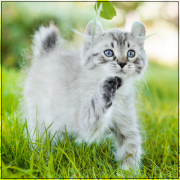 rośnie na wysoką, barczystą, masywną | czarny srebrny point | pręgowanie dzikie | niebiesko-szare oczy zmienią się na soczyste niebieskie | krótki ogon | zakręcone uszy |